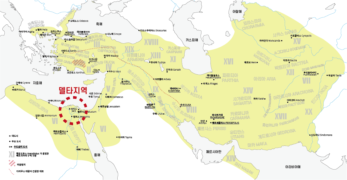 나라가 이렇게 시끄러우니 페르시아 제국의 변방에서 호시탐탐 독립을 꿈꾸던 나라들이 가만 있을리가 없겠지요. 혼란을 틈타서 페르시아 제국에 강제로 병합되었던 나라들이 반란을 일으키는데요. 그 대표적인 나라가 이집트였습니다. 아닥사스다가 왕이 된 후 10년 동안이나 이집트의 반란이 산발적으로 지속되었습니다. 특히 기원전 459년이 되면, 이집트의 비옥한 델타 지역 모두를 이집트인들이 손에 넣고 페르시아 세력을 이집트 본토 땅 밖으로 밀어냅니다.