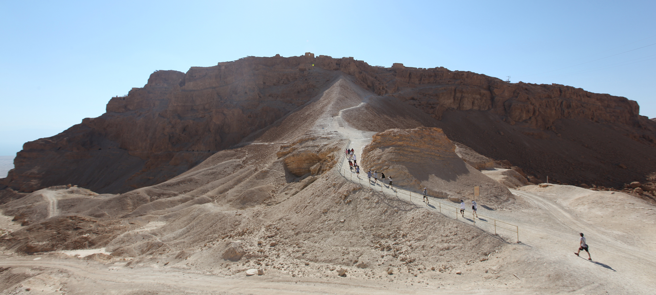 마사다 מצדה는 그 히브리어의 어근 자체가 "요새"라는 뜻을 가지고 있습니다. 요새라는 어근에 걸맞게 마사다는 사해바다 서쪽의 유대광야의 절벽 위에 만들어진 난공불락의 성채입니다. 사해 바다를 기준으로 마사다를 거슬러 올라가려며 약 400m나 되는 절벽같은 길을 올라가야하고, 그나마 좀 괜찮다 싶은 서쪽의 90m는 절벽인지라 사람이 오르는 것 조차가 불가능한 곳이기 때문이지요.