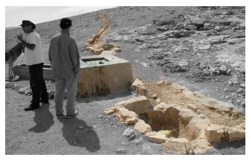 유대 광야는 대부분 석회입니다. 게다가 유대광야는 그냥 넓직한 평지도 아니라, 경사가 급한 구릉들이 오밀조밀하게 서로 맞대어 이어진 건조한 땅입니다. 그러다보니, 비가 오면 비가 땅에 흡수가 되는 것이 아니라, 그냥 경사면을 따라서 빠른 속도로 흘러 내립니다. 땅이 물을 머금을 새도 없이 말이지요. 석회의 땅이니 땅 속 어디에선가는 동굴이 생기고, 기다린 동굴 어디에선가는 우리나라의 석회 동굴들처럼 시냇물도 흐르고, 동굴 안에서 강이 흐르고 할 수도 있겠지만, 드러난 지표에서는 물을 찾기도, 구하기도 매우 어려울 수 밖에 없습니다. 그래서 유대광야에서는 매우 독특한 방식으로 물을 모으는데요, 경사면에 물이 흘러 내릴 수 없도록 돌을 살짝 쌓습니다. 그리고는 물의 방향을 이미 파 놓은 물 저장고 (Water Cistern) 쪽으로 흐리게 하는 것이지요.