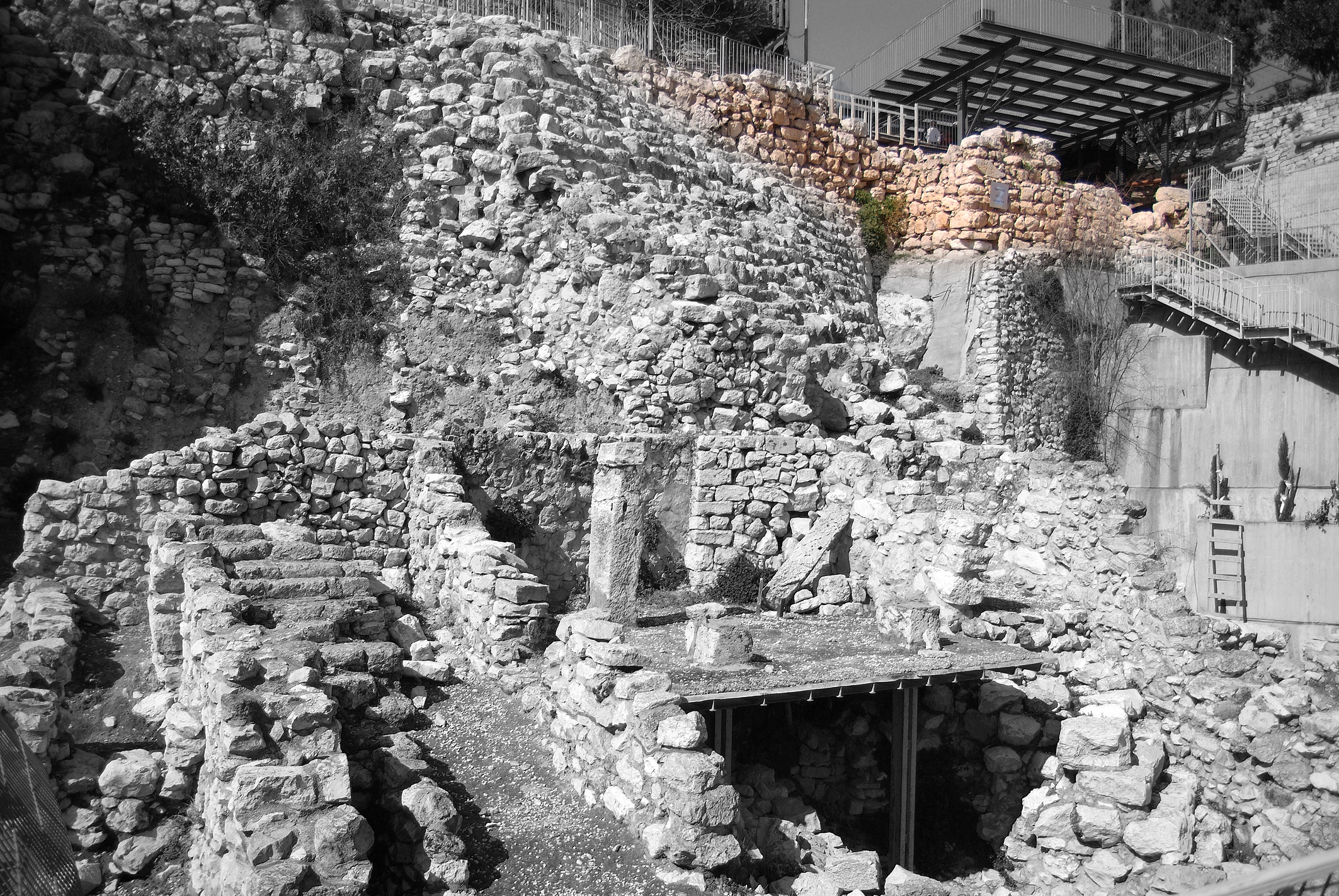 2007년에 에일랏 마잘 (Eilat Mazar) 이 다윗성으로 추정되는 곳을 파고 들어가기 시작했습니다. 사실은 다윗의 궁전을 찾는 것이 목표였습니다. 그런데, 기대하지 않았던 발견을 하게 되지요. 다윗 성터 위에 5미터 두께, 그리고 30미터 길이의 느헤미야 시대의 성벽을 발견하게 된 것입니다. 52일이라는 짧은 기간에 바벨론에 의해서 멸망 당하기 전의 웅장한 예루살렘 성 (667,731 m2)을 모두 완벽하게 복원하기란 재원이나 시간 상으로 불가능한 일이었습니다. 그래서 당장에 돌아온 백성들이 안전하게 머무를 수 있는 작은 방어성을 건축한 것이지요. 그리고 특별히 경사가 매우 급하고 공사를 하기 어려운 성의 동쪽 편 기드론 골짜기 부분은 경사면이 아니라, 그 보다 위쪽에 비교적 공사가 용이한 지역에 성벽을 쌓아 올립니다. 하지만, 그것도 쉬운 일은 아니었어요. 그래서 아마 제일 많은 인원이 동원되었을 지도 모릅니다. 바로 그 부분이 발견된 것이지요.