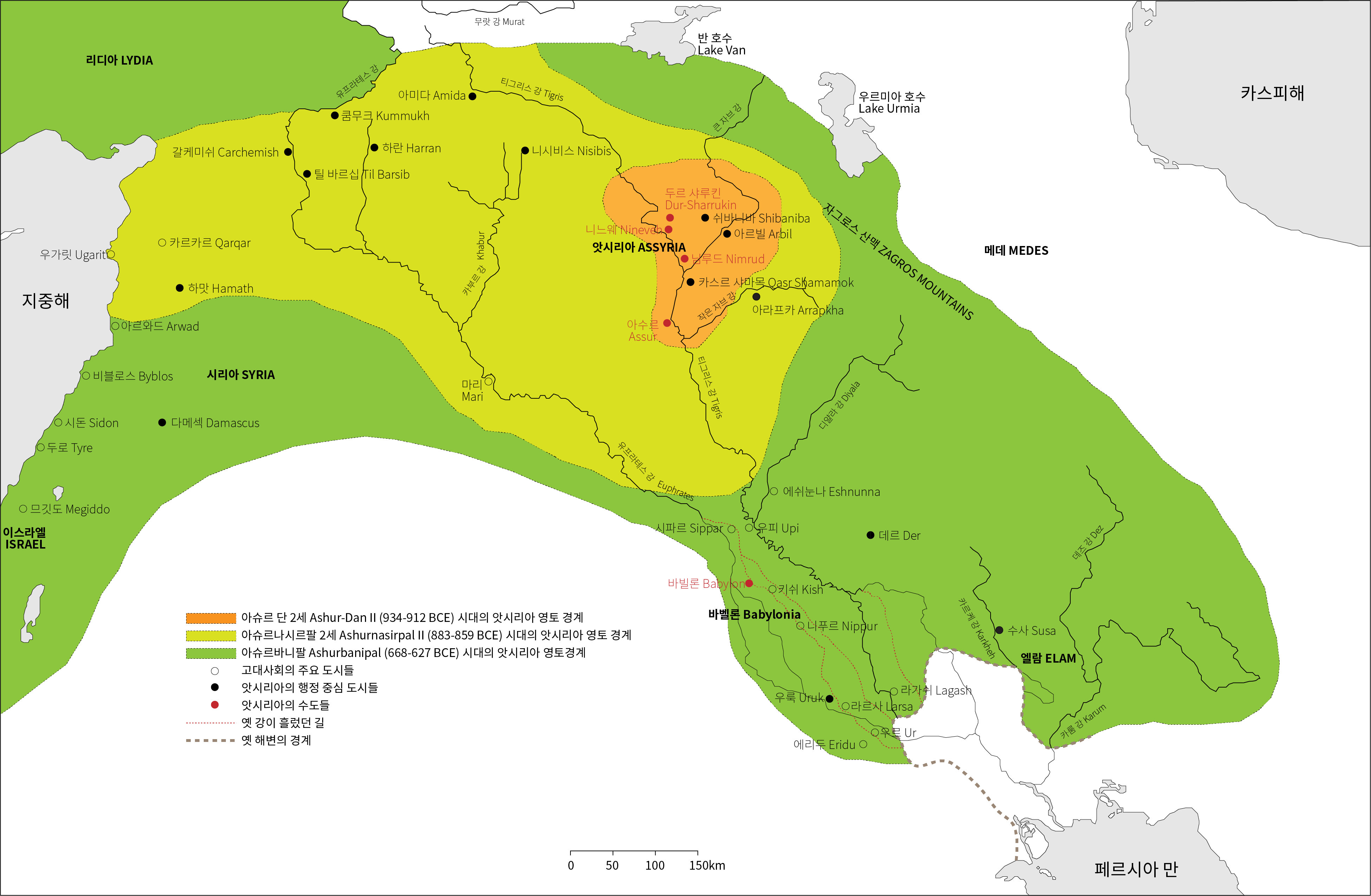 앗수르의 영토 변천사를 보여주는 지도입니다.