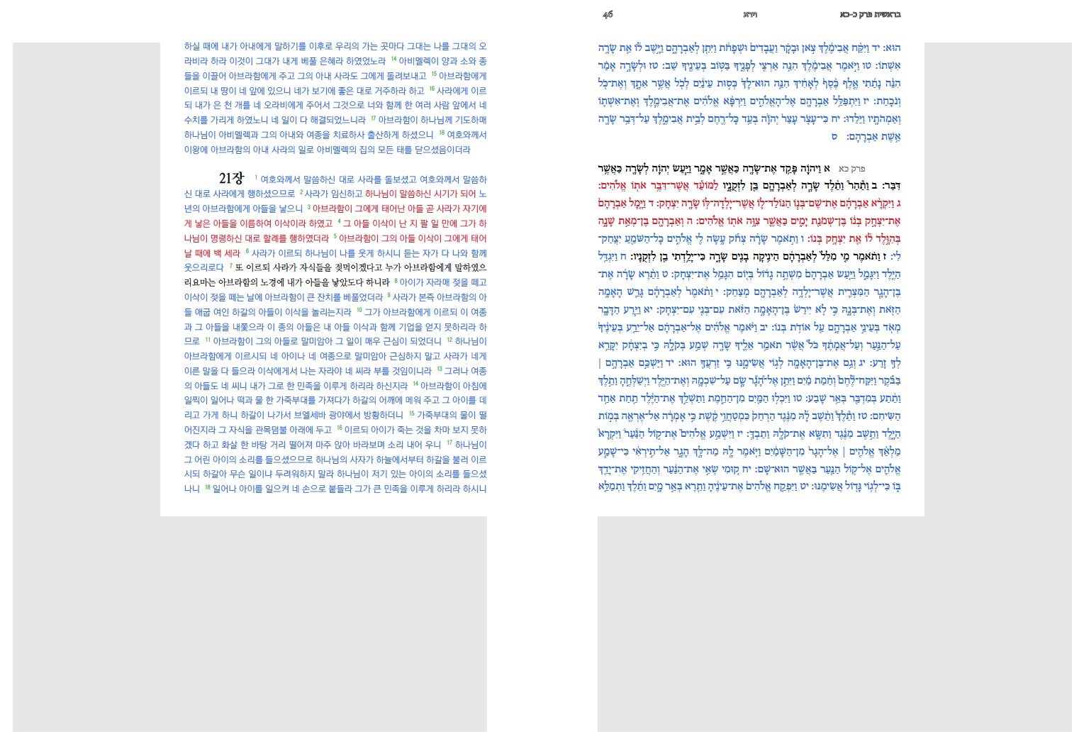 좀 시간 낭비인 일이기는 하지만, 한국에서 구약을 공부하는 학생들의 가장 큰 어려움 중의 하나가, 히브리어로 성경을 읽고나서는 한글로 번역하는데 어려움이 있고, 또 참조할 때에 적어도 두권의 성경을 나란히 펼쳐서 이것보고 저것보고하는 어려움이 있습니다.