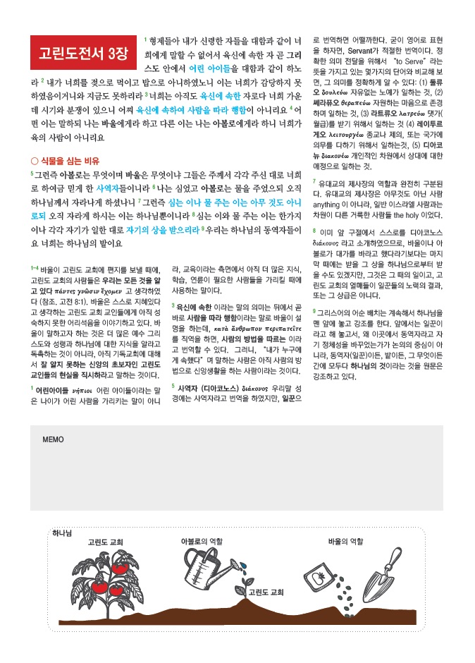 제가 지금 예배를 드리는 이스라엘 한인교회 남선교회에서 기도모임과 함께 성경을 읽는데, 이번 주는 제가 인도하는 차례가 되었습니다. 성경을 읽고 묵상하면 나누는 모임이면서, 동시에 많은 분들이 목사님이신지라, 질문도 대단히 까다롭네요. 성경을 읽으면서 제가 정리한 약간의 설명을 모아서 Hand-Out을 만들었습니다. 혹시 고린도전서 3장 즈음을 읽으시는 분들이거나, 읽어보시려는 분들에게 도움이 되길 바랍니다.