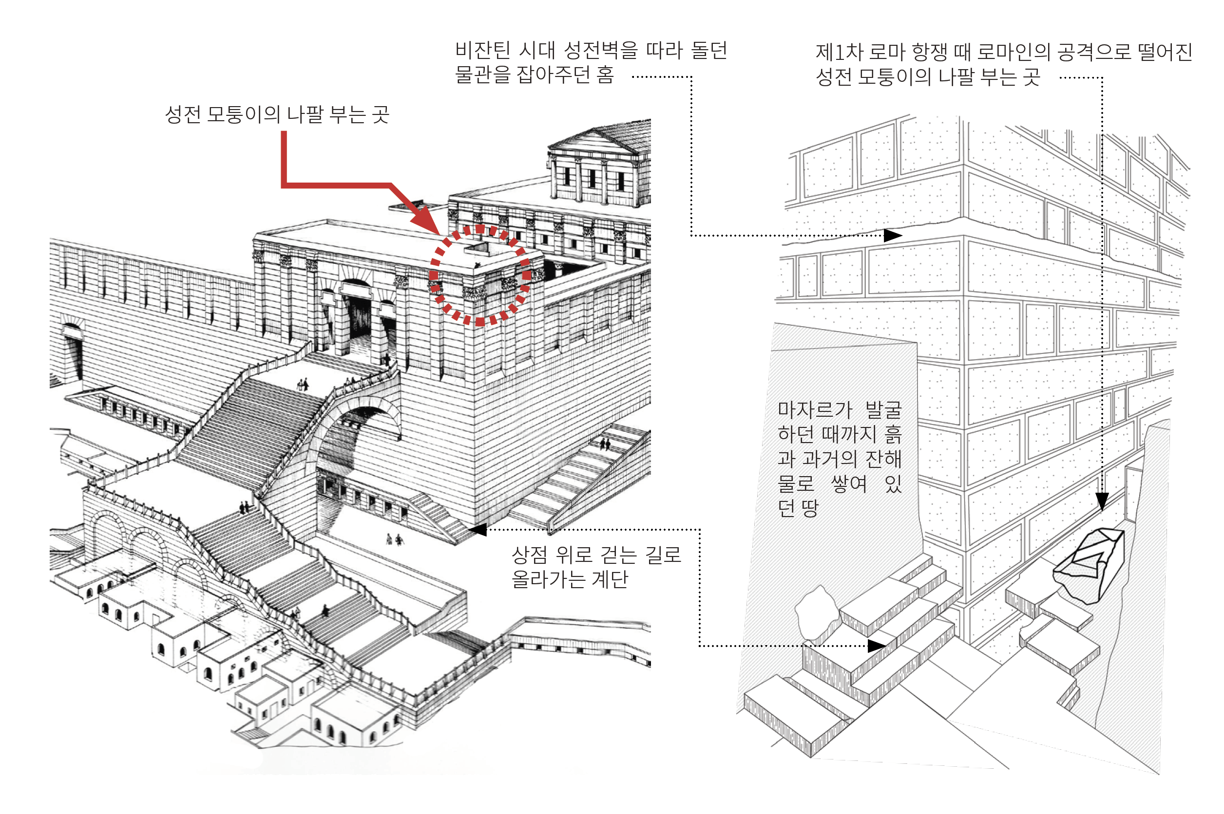 아마 안식일이 시작될 때마다, 그리고 명절, 특별히 나팔절(새해)에 이 곳에서 나팔을 불었을 겁니다. 언덕 위, 그리고 그 언덕에서도 대략 60-80m 높이의 성전벽 모퉁이에서 부는 뿔나팔 소리를 듣지 못할 사람들은 아무도 없었을 거예요. 안식일이 되면, 그 나팔이 이렇게 외칩니다. “안식일을 기억하여 거룩하게 지키라. 이 날은 네 하나님 여호와의 안식일이니, 너희들을 위해서 하는 어떤 일도 하지 말라.” 이 새해에는 나팔이 이렇게 외치는 것 같습니다. “하나님께서 허락하시는 달콤하고 복된 새해를 맞이하라. 그리고 죄된 옛 것들은 모두 던져 버리고 사람들과 더불어 화해하고 화목하라.”