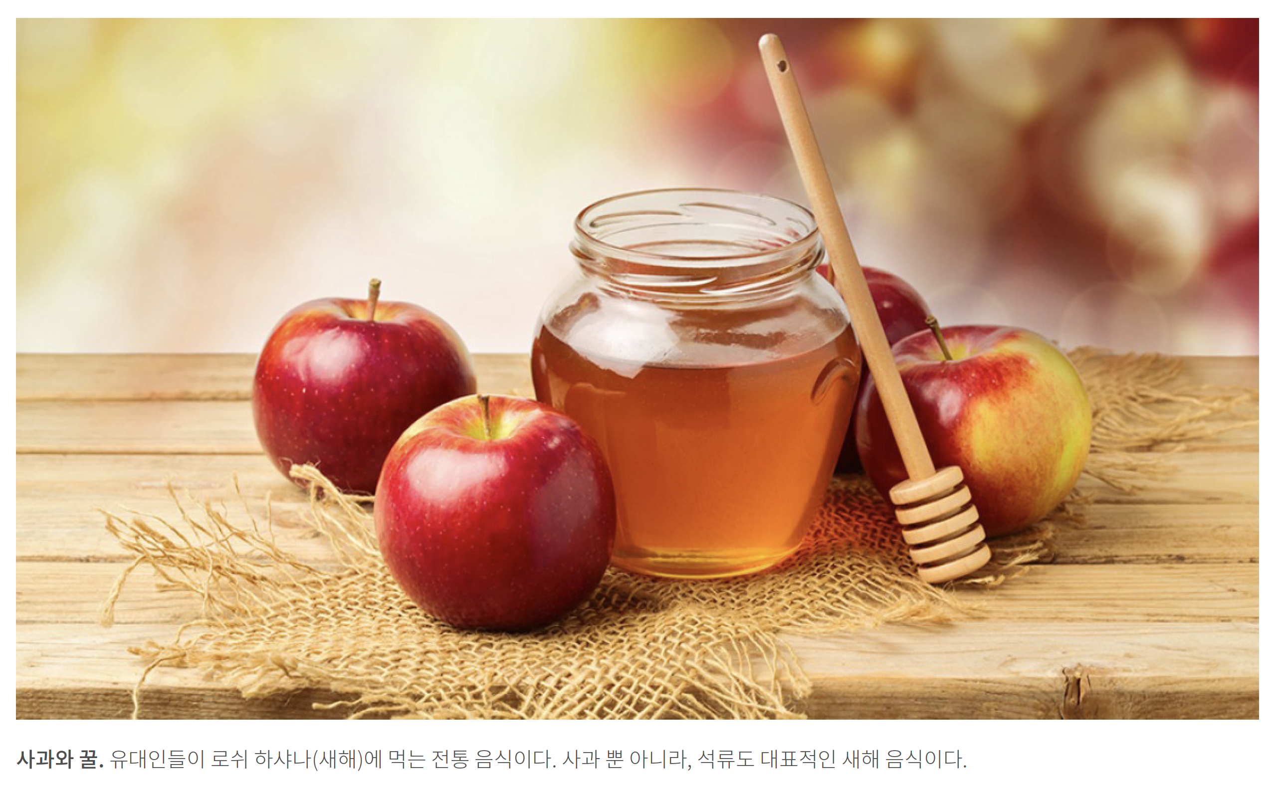 유대교의 예배에서 가장 긴 예배 순서(Prayer Service)를 가진 날은 대속죄일입니다. 그 다음으로 공식적으로 긴 예배 순서를 가진 절기가 새해입니다. 대략 오전 9시부터 12시까지이니, 한 시간에서 한 시간 반 남짓의 개신교의 예배에 비하면 참 길지요. 사람의 삶과 죽음을 묵상하는 기도와 왕이신 하나님의 은혜를 구하는 기도가 이 예배의 주를 이룹니다. 우리 나라에서는 “새해 복 많이 받으세요.”라고 말을 하지요? 유대인들 역시 “샤나 토바”(שׁנה טובה 좋은 한해를 보내세요) 라고 인사를 합니다. 우리 나라에서 떡국을 먹듯이, 유대교에서는 사과를 꿀에 찍어 먹는 풍습이 있습니다. 우리는 떡국을 먹고 한 살을 더 먹는 것을 즐거워하고, 유대인들은 사과를 꿀에 찍어 먹으며 새롭게 맞이하는 해가 그처럼 달콤하기를 기원합니다. 그러고보면 세계적으로 새로한 한 해를 맞이하는 풍습은 조금씩 다르다손 치더라도 거의 비슷한 것같아요.