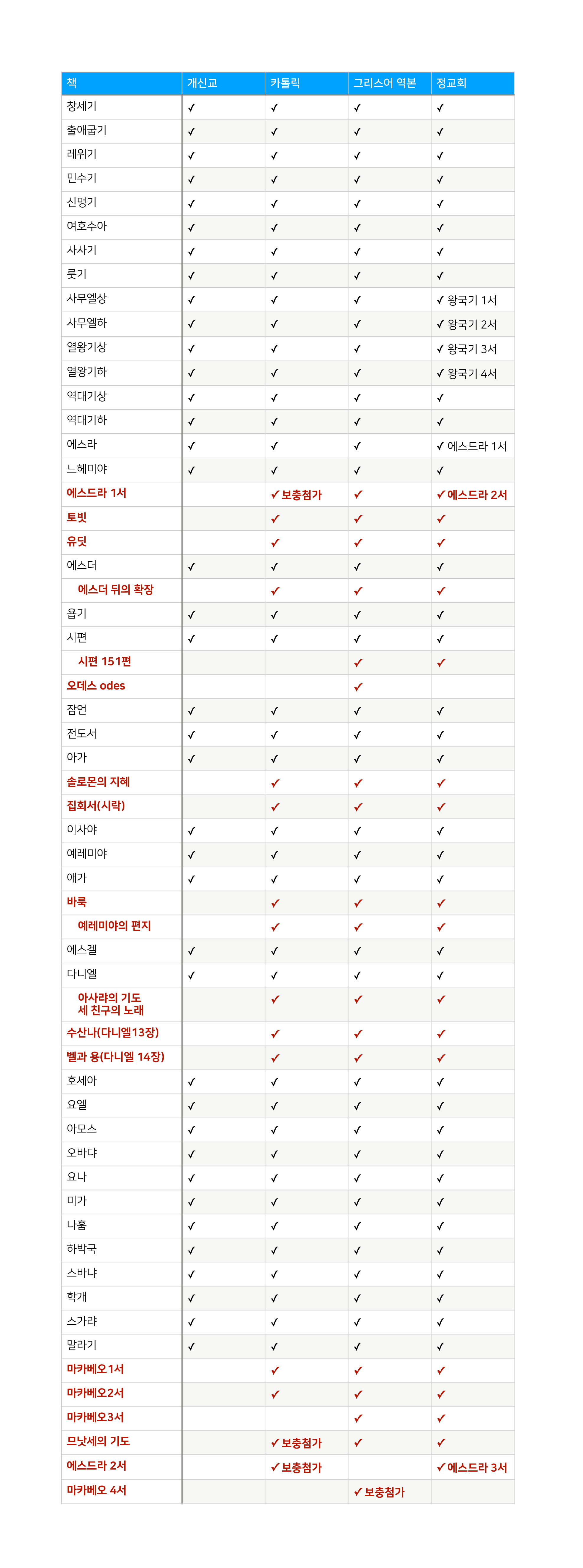 구약 정경 비교: 개신교, 카톨릭, LXX, 정교회 PDF 다운로드